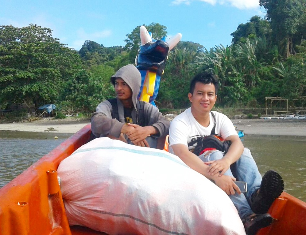 Sesampainya di Pelabuhan Teluk Penyu, kami segera menyewa perahu untuk membawa kami ke Nusakambangan. Kebetulan pemilik perahunya adalah temannya Rio, jadi kami dikasih harga murah, per orangnya bayar Rp 25.000,- (PP). Itulah enaknya kalau traveling ke suatu kota, kita punya teman atau kenalan di kota itu. Haha....